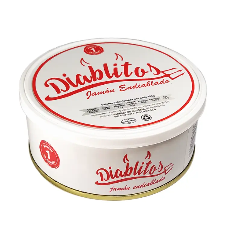El JAMÓN ENDIABLADO (DIABLITOS) 250G es un producto de alta calidad inspirado en la tradición venezolana. Elaborado con carne de cerdo seleccionada y finamente condimentada, ofrece un sabor picante, intenso y equilibrado. Perfecto para quienes buscan un producto versátil y sabroso, ideal para untar en pan, galletas o preparar bocadillos gourmet. Su textura suave y cremosa permite un uso práctico en la cocina. El JAMÓN ENDIABLADO (DIABLITOS) es un referente de calidad, sabor y autenticidad que realza cualquier preparación con un toque distintivo.
