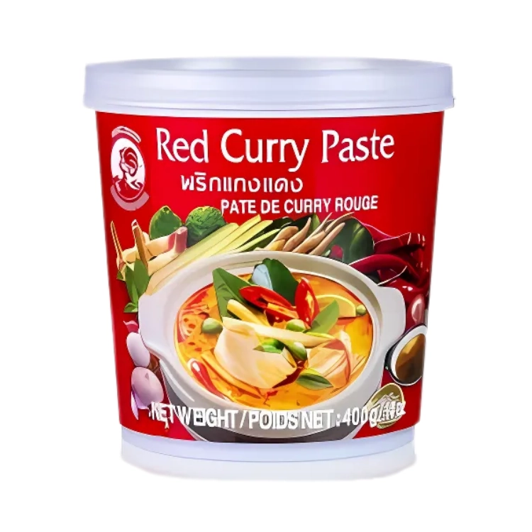 La pasta de curry rojo COCK con su sabor picante y aromático, es una ingrediente tailandés imprescindible para cocinar los mejores platos asiáticos. Se usa comúnmente en curries, sopas y guisos tailandeses.