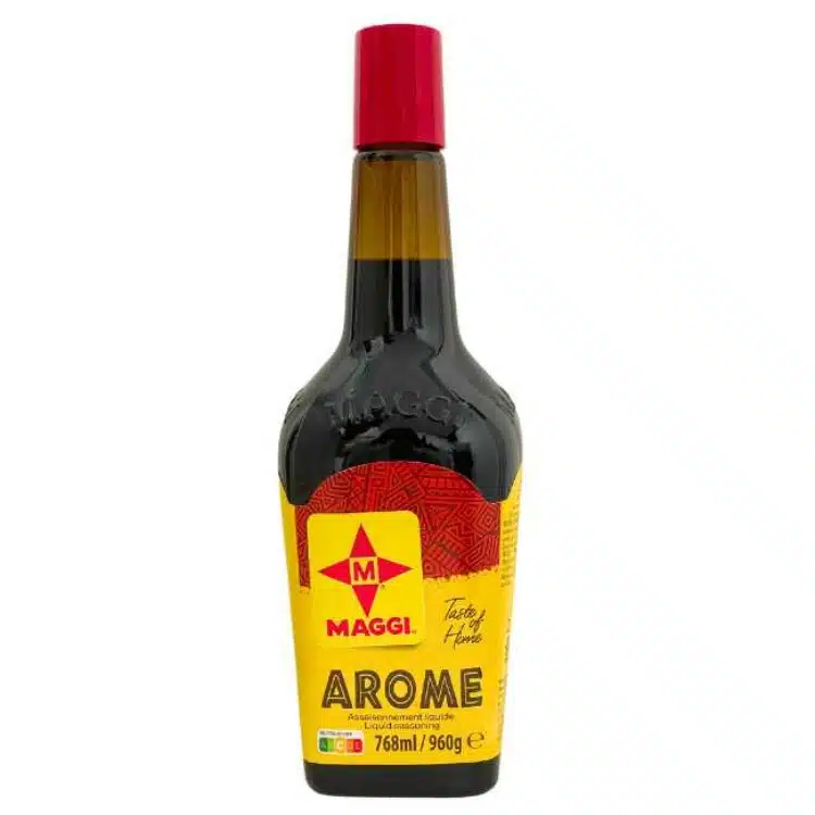La salsa MAGGI es un condimento líquido de sabor intenso, ideal para dar un toque único a tus preparaciones. Perfecta para sazonar carnes, sopas, ensaladas y una amplia variedad de recetas de cocina.