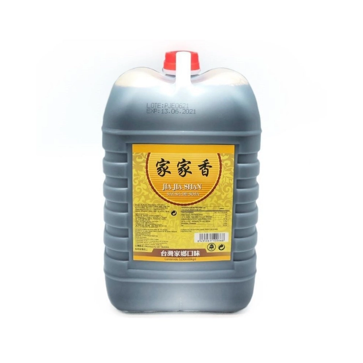 La salsa soja JIA JIA SHAN 5.3LT es una salsa de soja de gran volumen, originaria de China. Ideal para cocinar en grandes cantidades, su sabor profundo y umami realza platos asiáticos y otros.